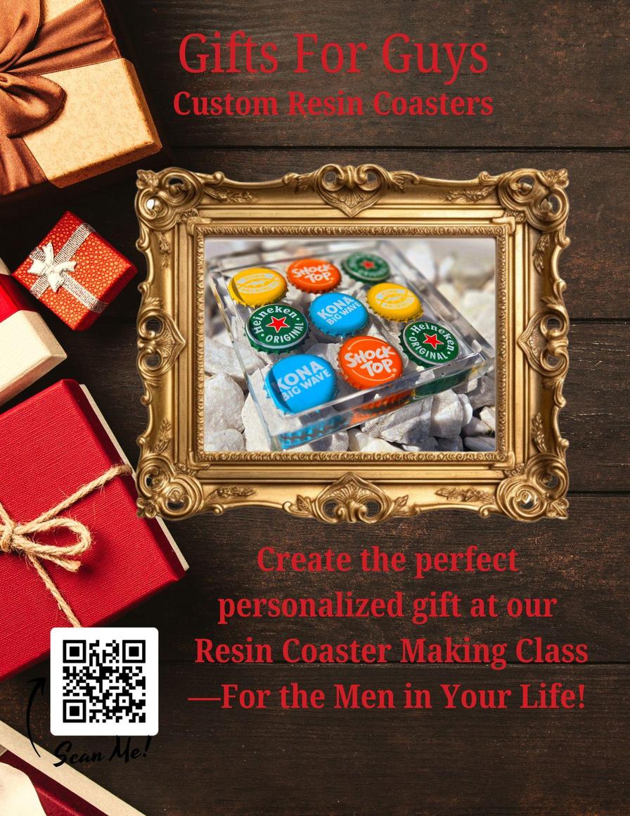 🛠️🥃 Create the perfect personalized gift at our Resin Coaster Making Class—For the Men in Your Life! Craft custom resin coasters filled with items that reflect his hobbies and interests—like golf tees, fishing lures, bottle caps, or small keepsakes. 🎨✨ A fun and creative way to make something unique, practical, and totally one-of-a-kind!